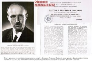 Ці та багато інших думок й висловлювань Ярослава Стецька, його невтомна діяльність на світовому рівні та загалом об’єднання в єдину потугу численних поневолених Москвою народів світу викликали переляк в московських більшовиків. Агенти КДБ СРСР по цілому світі намагалися відстежувати всі пересування та діяльність Ярослава Стецька та його дружини Слави, так що їм у начебто вільному світі доводилося доволі ретельно конспіруватися. Тогочасні документи КДБ засвідчують визнання радянським керівництвом особливої небезпеки для їхнього режиму діяльности як Стецька особисто, так і АБН. Зокрема в одній із аналітичних записок зазначено: «По линии АБН СТЕЦЬКО работает особо активно. (…) Благодаря ему АБН действительно установила тесные взаимоотношения с антикоммунистической лигой народов Азии и с организацией обороны континента в США. (…) Широкая деятельность СТЕЦЬКО и его поездки по местам концентрации украинской эмиграции способствовали укреплению его авторитета в оуновских кругах». В міру можливостей керівництво СРСР через розкидану по світу агентуру намагалося протидіяти цій діяльности. На одній із наведених світлин подано оригінальне запрошення для української спільноти Нью-Йорка на зустріч з Ярославом Стецьком, а також листівку-фальшивку виготовлену агентурою КДБ, яку невідомі «ввічливі чоловічки» роздавали усім, хто прямував на цю зустріч. На лицьовій стороні листівки (аверсі) ніби пристойний портрет Стецька та німецькою мовою коротка біографічна довідка, а на зворотній доволі примітивний текст, що оббріхує голову АБН, розрахований хіба на людську захланність. Зрештою вище цитований уривок звіту КДБ засвідчує, що ці потуги не завдали найменшої шкоди Ярославу Стецьку, авторитет якого серед української еміграції залишався непохитним до кінця його життя.