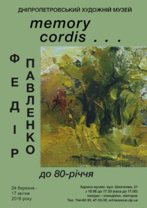 5.03.1936 – народився Федір Павленко – художник. У роки війни втратив батьків, потрапив до дитячого будинку, звідки втік і тривалий час був безпритульним, мандруючи великою країною. Волею випадку опинився в Дніпропетровську (нині Дніпро). Закінчив ремісниче училище, працював токарем на заводі. У 1966 вступив на факультет художньої графіки Орловського педагогічного інституту, проте навчання не закінчив і вищої освіти не здобув. Тривалий час працював художником-оформлювачем. Шукав себе в графіці, кераміці, а на початку 1990-х перейшов до живопису. Наполегливою працею та самоосвітою зумів випрацювати індивідуальну художню пластику; увійшов до грона «нестандартних» представників дніпровської школи живопису. За оцінками мистецтвознавців став «явищем» у мистецькому житті Дніпра. Мистецький світ дізнався про художника випадково, коли той приніс декілька своїх полотен на продаж до салону-магазину при Художньому музеї. За ініціативи працівників музею в березні 2001 відкрилася його перша персональна виставка. У Спілці художників не перебував. Помер у Дніпрі 2008.