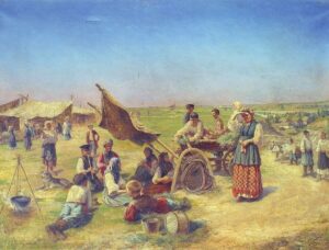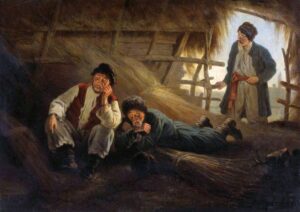 9.02(28.01.).1826 – у м. Курськ, нині в Московії, народився Костянтин Трутовський – живописець, графік. Перших 9 років виростав у с. Попівка-Семенівка Харківської губернії (нині на Сумщині). Батько Олександр Трутовський був поціновувачем мистецтва та художником-аматором, то ж любов до творчости прищепив й синові. Костянтин навчався у приватному пансіоні в Харкові та Миколаївському військово-інженерному училищі в Петербурзі (1839–1845), яке готувало військових топографів. В училищі познайомився з Федором Достоєвським, захопився літературою, зокрема творами Миколи Гоголя, і саме тоді усвідомив себе українцем. В Петербурзі познайомився також з Тарасом Шевченком. По завершенні навчання залишився в училищі як викладач живопису й архітектури. Водночас як вільний слухач навчався в Академії мистецтв (1845–1849; клас історичного живопису Ф. Бруні). У 1856 отримав звання вільного художника, стажувався за кордоном, член Королівського товариства акварелістів Бельгії (1857), від 1860 академік Петербурзької АМ. Проте чужий Петербург не приваблював мистця, то ж мешкав у Харківській та в Курській губерніях. Одружився з Софією Самбурською. Повністю присвятив себе творчости провідною темою якої стало відтворення на полотні українського світу та зображення українського села Слобожанщини. Особливе зацікавлення виявляв до етнічної межі між розселенням українців і московитів, яка тоді проходила через Курську губернію та взаємний перехресний вплив різних культур. Ілюстратор творів українських письменників, зокрема Миколи Гоголя, Тараса Шевченка, Марка Вовчка. Брав участь у виданні Лева Жемчужникова «Живописна Україна» (1861–1862). Найбільш відомим твором мистця є картина «Тарас Шевченко з кобзою над Дніпром» (1875; відома ще як «Кобзар над Дніпром»). Отримав широке визнання ще за життя. Справив значний вплив на подальші покоління українських живописців – Сергія Васильківського, Івана Їжакевича, Миколу Пимоненка, Опанаса Сластьона та інших. Помер у с. Яківлівці на Курщині (Східна Слобожанщина, нині в Московії) 1893. Похований в Обоянському Богородицько-Знаменському чоловічому монастирі. У 1924 більшовики зруйнували монастир і цвинтар, могила не збереглася.