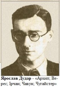 Ярослав Дудар-«Архип; Верес; Ірчан; Чавун; Чугайстер», провідний діяч ОУН, неодружений. Закінчив польську гімназію у Тернополі (1935), навчався у Львівській політехніці (1935-1939). Член Юнацтва ОУН (1931). Під час студентського з’їзду 20.09.1939 у Львові заарештований польською поліцією, однак з підходом до міста більшовиків дістався на волю; перейшов у німецьку зону окупації. Обласний провідник ОУН на Холмщині (1949-1941). Учасник Похідних груп ОУН (1941), один із керівників націоналістичного підпілля у Житомирській і Вінницькій областях. Обласний провідник ОУН Кам’янець-Подільської области (від 01.1942). Заарештований ґестапо (04.1942), піддавався страшним катуванням. Через півроку зумів втекти з Рівненської тюрми. Організаційний референт Крайового проводу Осередньо-східних українських земель, крайовий провідник ОСУЗ (1943-1944), член Крайового проводу Північно-західних українських земель, виконувач обов’язків провідника ОУН на ПЗУЗ (1945). Двічі відзначений Срібним Хрестом бойової заслуги УПА. Народився у с. Карашинці на Тернопільщині 20.03.1915.