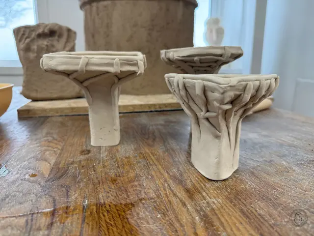 Спроба поєднати мистецтво та щоденний ужиток стала ключовою в цьому проєкті. Це будуть столи, які ніби виростатимуть із ґрунту, уособлюючи образи плодових дерев: яблуні, груші та сливи. Саме ці дерева Наталя Матвійчук обрала невипадково, вони є традиційними для Полтавщини, викликають теплі спогади про літо, дитинство та домашній сад. «У столах буде поєднано глину й дерево: глиняна основа, дерев’яна поверхня, з центру кожного столу ніби проростатиме паросток дерева. Для мене це не про конструкцію, а про природну тяглість: про те, як одне відходить, щоб дати місце іншому…» – зауважила художниця-керамістка.