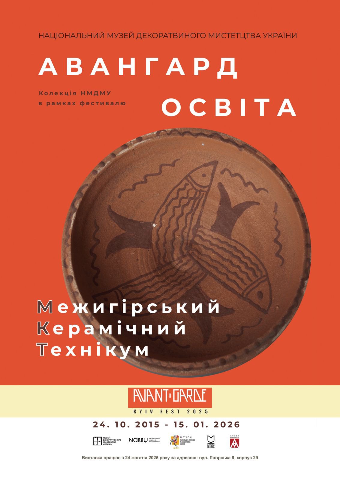 24 жовтня о 17.00 у Національному музеї декоративного мистецтва України відкривається виставковий проєкт «Авангард. Освіта. Межигірський керамічний технікум» (з фондової збірки музею). Проєкт здійснюється в рамках міжмузейного фестивалю «Авангард. Київфест. 2025».