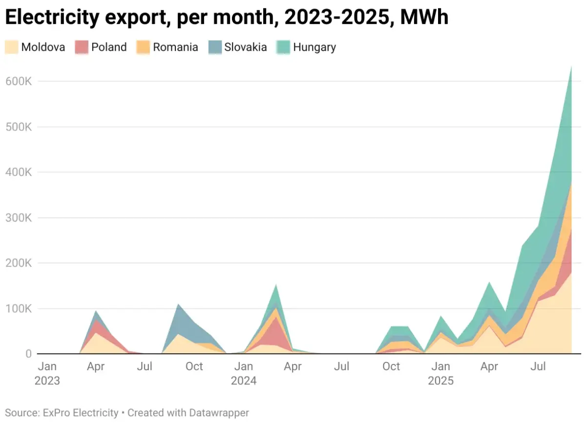 Показник є рекордним з початку інтеграції з ENTSO-E. Найбільше електроенергії було експортовано до Угорщини, 40% від усіх обсягів.