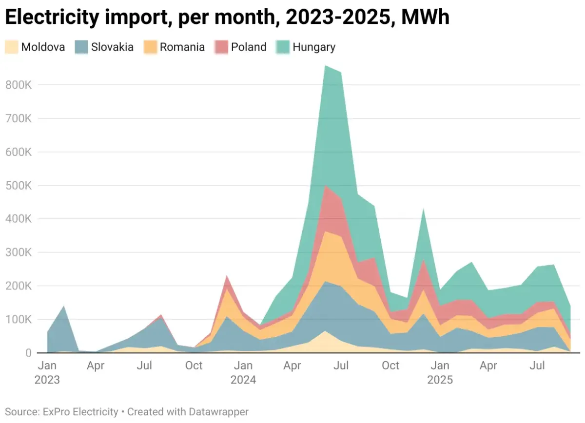 Імпорт електроенергії у вересні 2025 року знизився на 47%, у порівнянні з попереднім місяцем – до майже 140 тис. МВт-год, свідчать дані моніторингу ExPro Electricity.