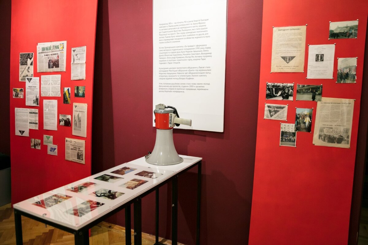 Тож найбільша частина виставки присвячена діяльності Громадського комітету опору «За правду!» – складовій всеукраїнської кампанії «Україна без Кучми». Завдяки унікальним документам відвідувачі зможуть побачити, як саме формувалось середовище протестувальників, на яких ціннісних засадах, та що мотивувало молодь до системної діяльності.