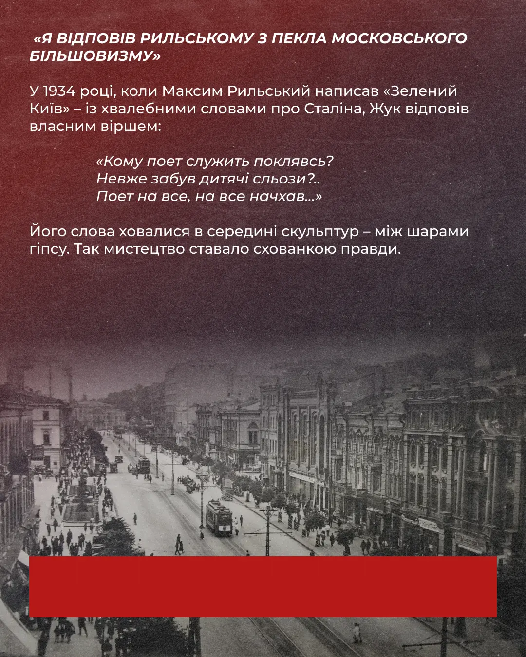 Його твори зберігали не лише форму – а й свободу. У скульптурах він ховав український прапор, заборонений у СРСР, і свої вірші проти російського більшовизму.