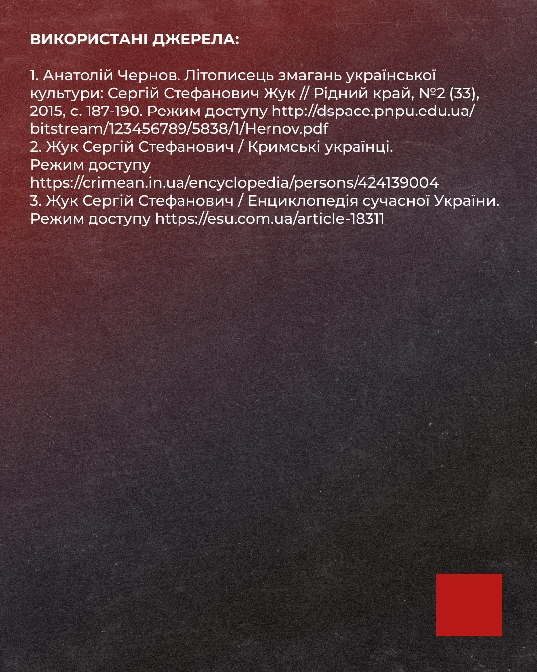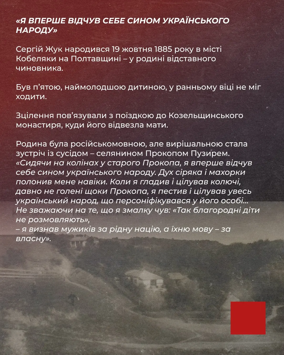 Сергій Жук – уродженець міста Кобеляки на Полтавщині, скульптор, письменник, публіцист і член Проводу ОУН. Людина, яка присвятила все життя боротьбі за національне мистецтво й українську ідею.