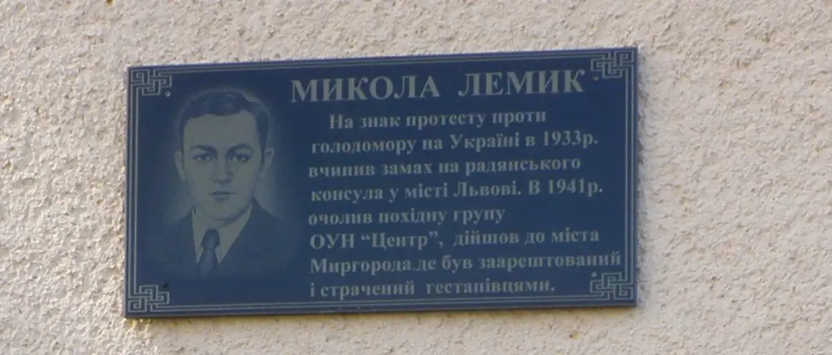 Меморіальна дошка Миколі Лемику у Миргороді на Полтавщині