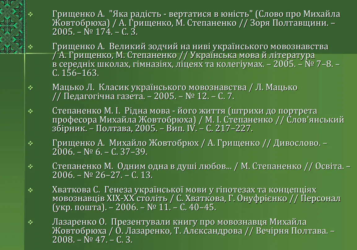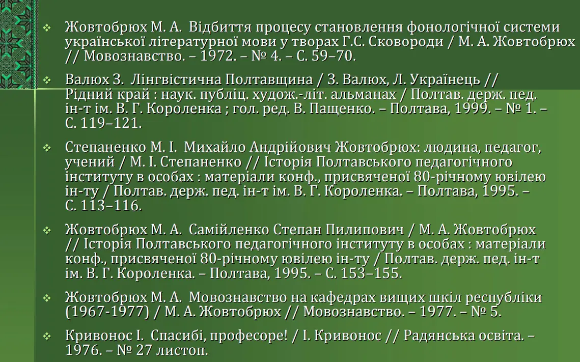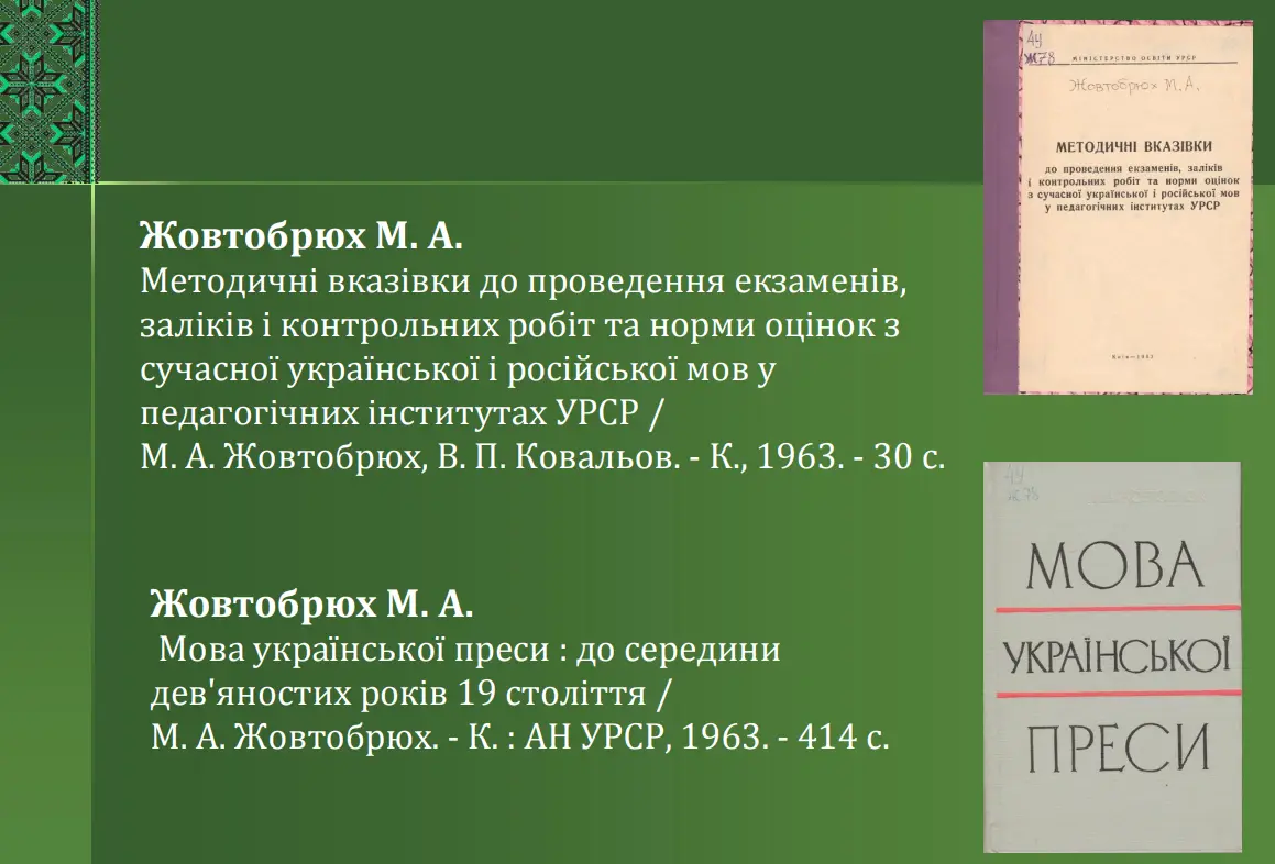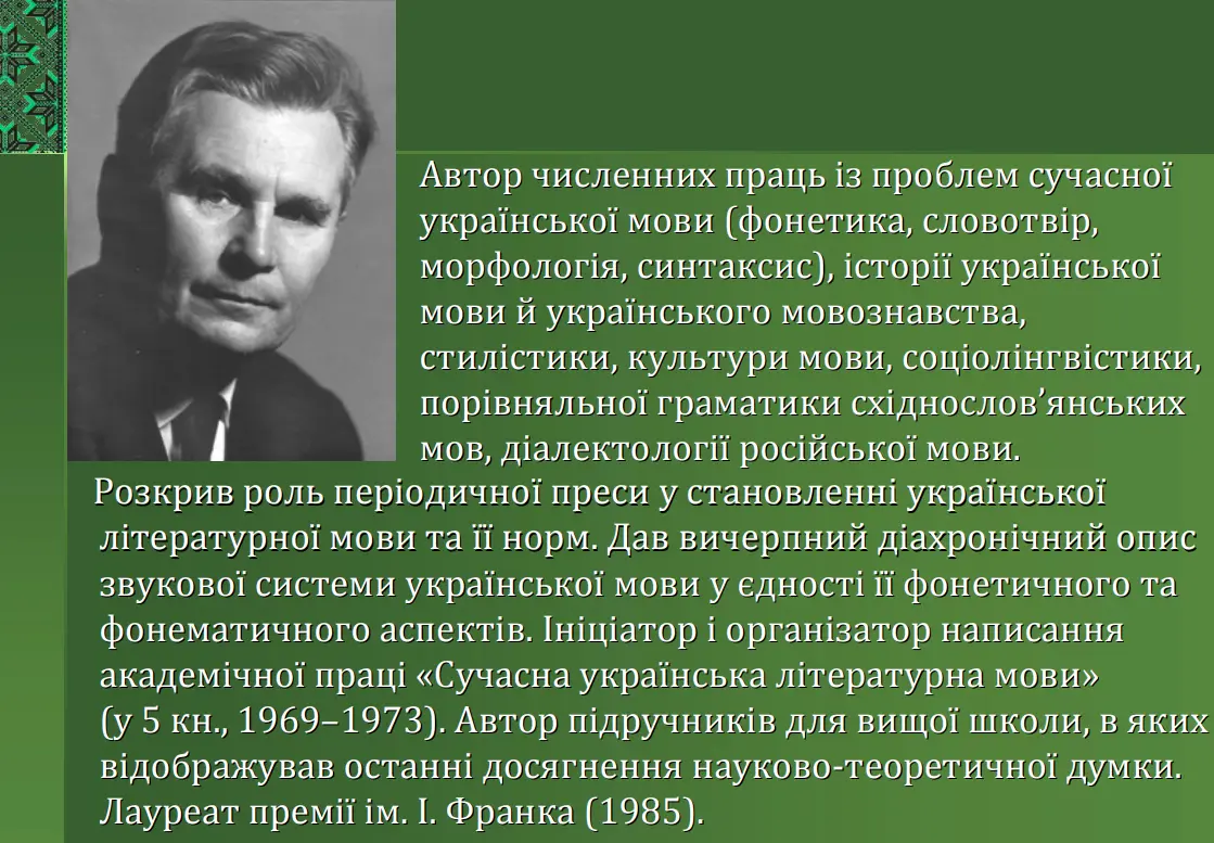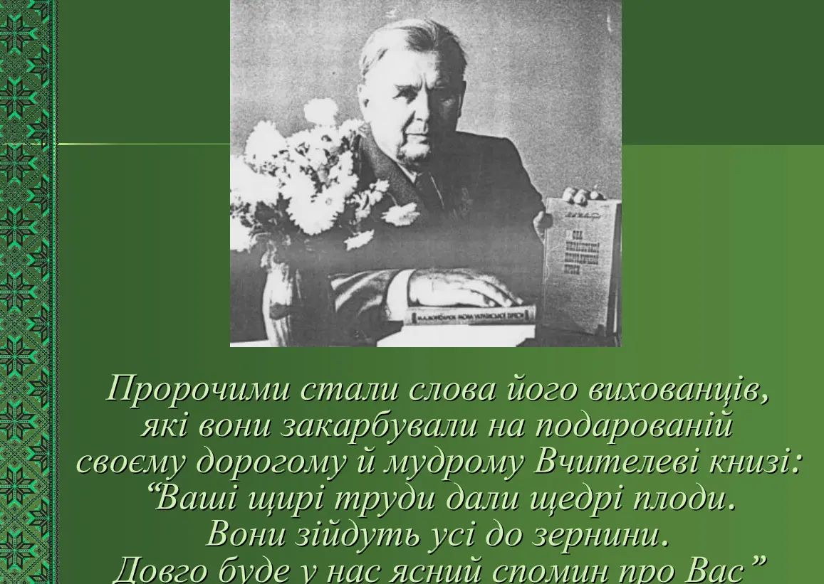 На прохання Міністерства освіти він підготував рекомендації «Норми оцінок з української мови в педагогічних інститутах».
