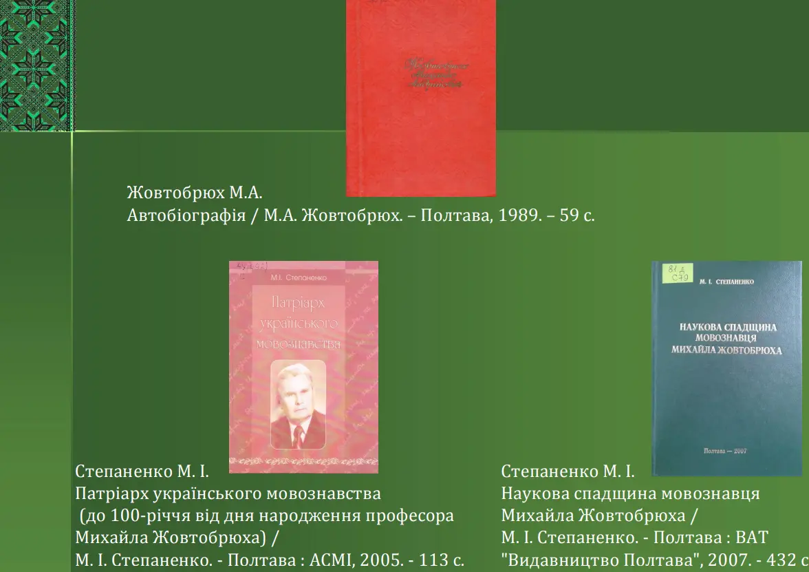 Уродженець села Ручки (тепер підпорядковане Петрівсько-Роменській громаді Миргородського району Полтавської області) Михайло Жовтобрюх був, є й залишиться назавжди знаковою постаттю в українській і світовій лінгвістиці. Цьогоріч 120-річчя із дня його народження за ініціативи Українського інституту національної пам’яті (УІНП) та згідно із Постановою ВР «Про відзначення пам’ятних дат і ювілеїв у 2024-2025 роках» відзначається на державному рівні. Дослідницький доробок Михайла Андрійовича (а це понад три сотні праць) займає осібне місце в сучасному лінгвістичному контексті. Жовтобрюх належить до таких науковців, в особі яких органічно переплелися академічна й вишівська наука. Упродовж довгого багатогранного життя не полишав студентської аудиторії, постійно підтримував зв’язки з мовознавчими кафедрами університетів та педагогічних інститутів, невпинно дбав про впотужнення їх кваліфікованими кадрами, залучав доцентів і професорів до активної співпраці з Інститутом мовознавства імені О. О. Потебні Академії наук. Сотні вчених-лінгвістів вважають Михайла Андрійовича своїм учителем, дякують йому за цінні поради та вчасну підтримку. Учні Михайла Жовтобрюха передають своїм вихованцям той багаж знань і те тепло, яким він ощедрював їх.