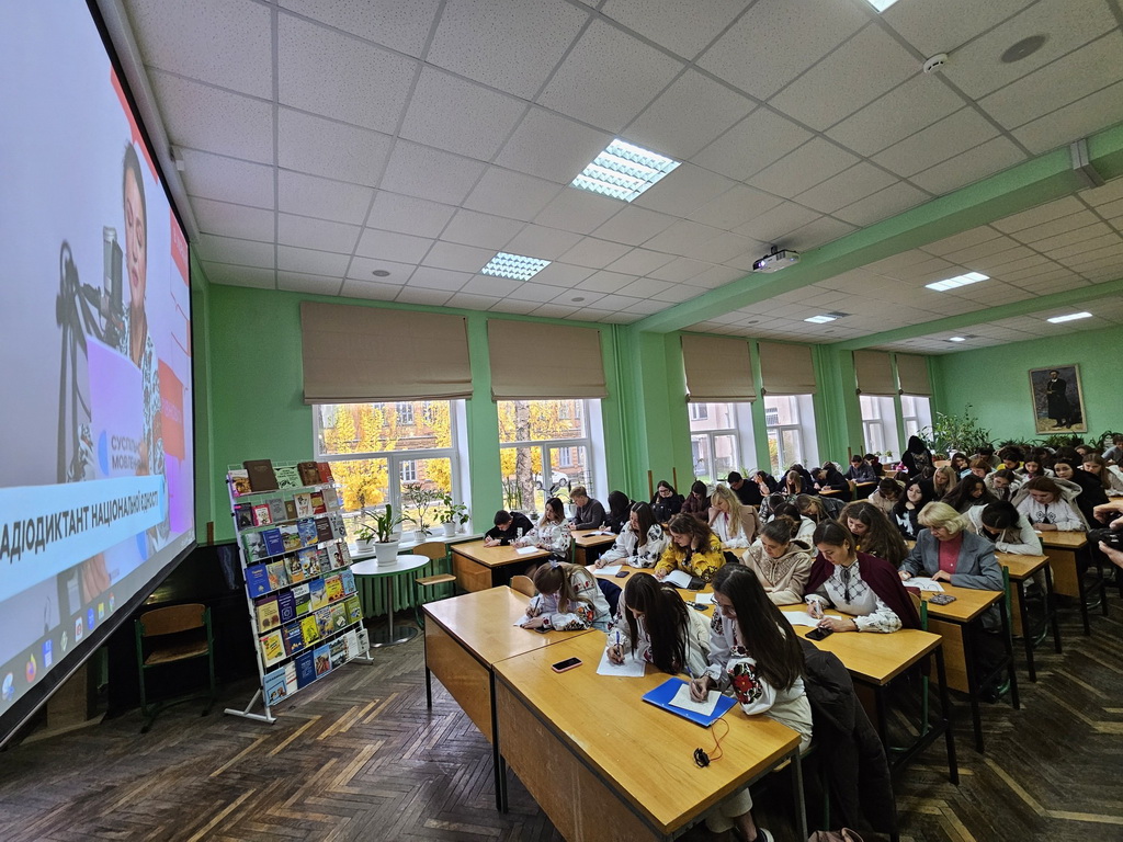студенти та викладачі ПНПУ пишуть диктант єдності у читальній залі Бібліотеки імені Михайла Жовтобрюха