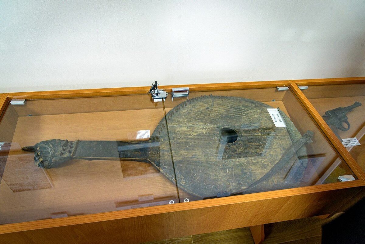 Бандура кобзаря Петра Гузя у Лютенському музеї. Фото poltava.to/project