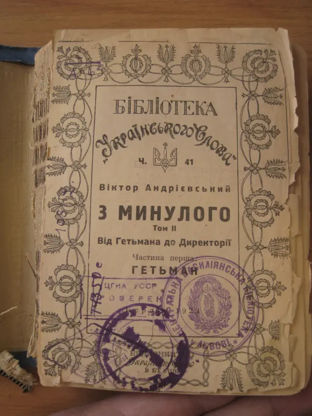 Світлина архівного оригіналу книги «З минулого. Від гетьмана до Директорії, мемуари».