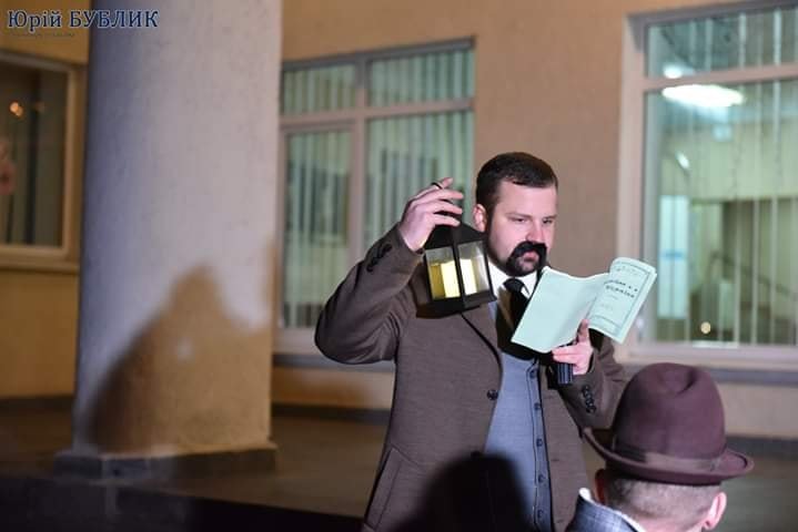 Герой України Юліан Матвійчук у ролі Миколи Міхновського під час історичної реконструкції й театралізованого дійства, присвячених 120-річчю з часу проголошення маніфесту «Самостійна Україна». Полтава, 19.02.2020 р. Фото https://poltava.to/
