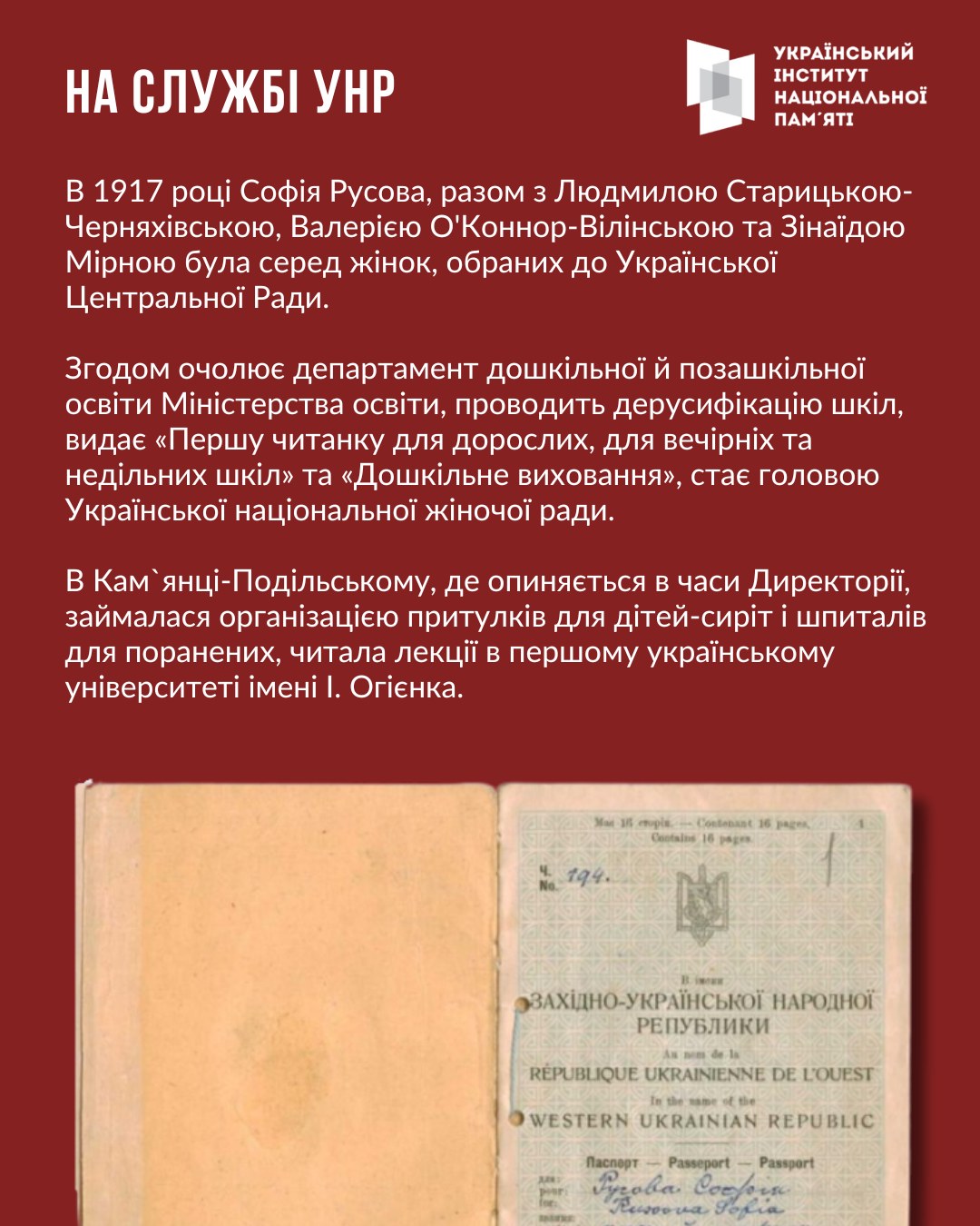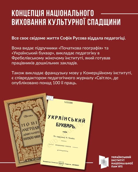 УІНП створив просвітницький слайдер, у якому відтворено знакові етапи життєвого шляху Софії Русової.