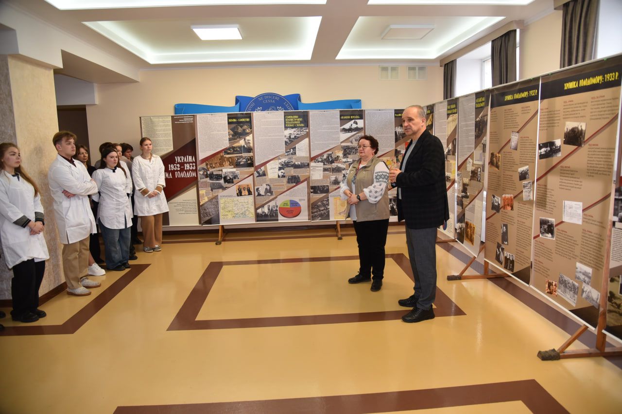 У центральному фоє Полтавського державного медичного університету експонується виставка Українського інституту національної пам’яті (УІНП) «Україна 1932-1933. Геноцид голодом». У просвітницькому зібранні з цієї нагоди взяли участь викладачі й студенти кафедр українознавства та гуманітарної підготовки, філософії, мікробіології, вірусології та імунології, біології, іноземних мов з латинською мовою та медичною термінологією, а також співробітники відділу виховної та гуманітарної роботи з молоддю, бібліотеки та представники деканату медичного факультету № 2.
