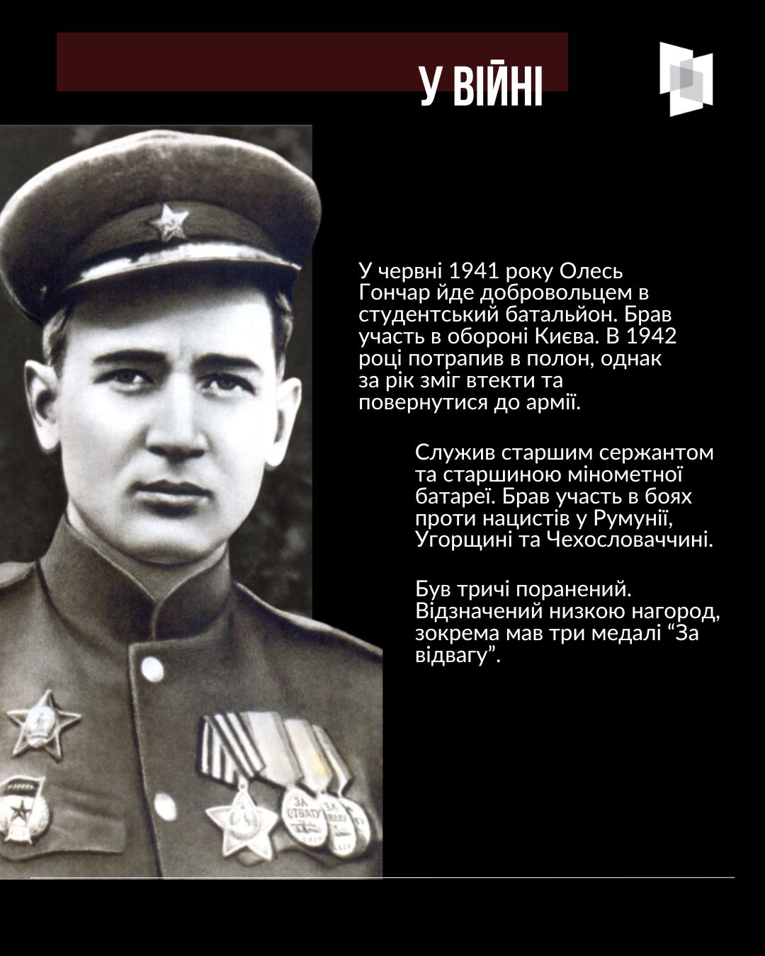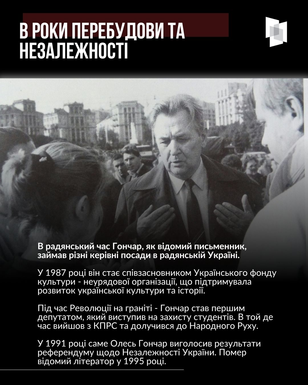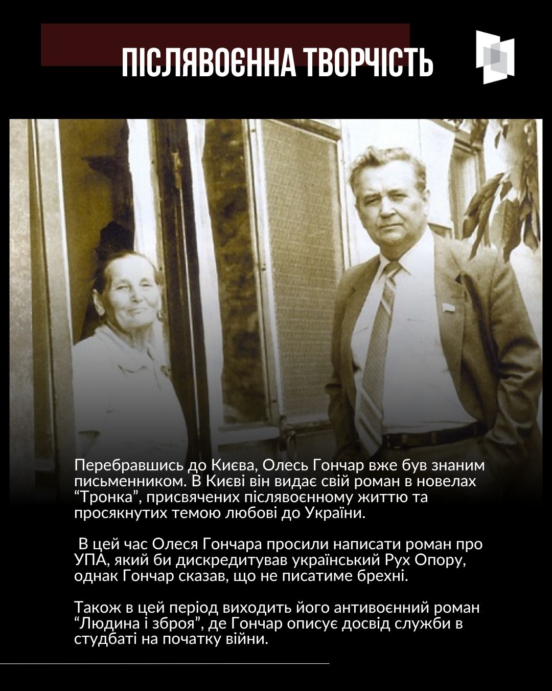3 квітня минуло 108 років від дня народження українського письменника та державного і громадського діяча Олеся Гончара. Про життєвий та творчий шлях літератора Український інститут національної пам’яті створив просвітницький слайдер.