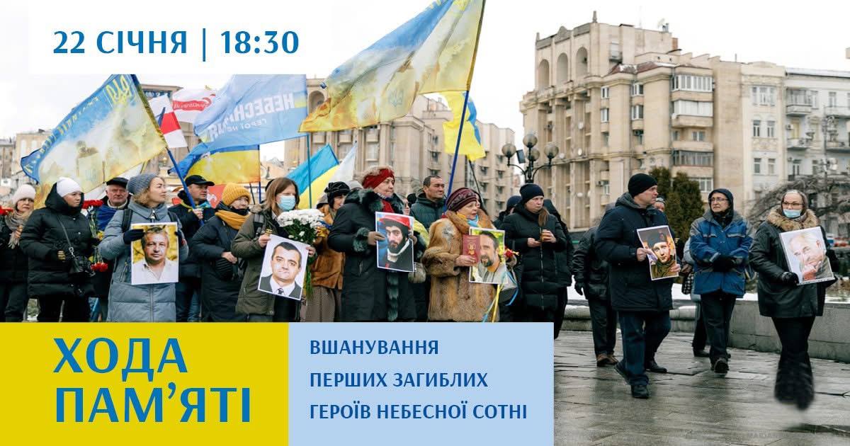 22 січня закликаємо приєднатися до ходи та вшанувати перших загиблих Героїв Небесної Сотні.