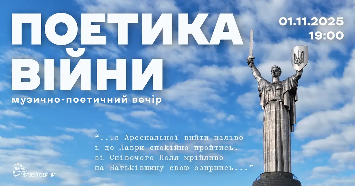 1 листопада 2025 року о 19:00 в Головному корпусі Національного музею історії України у Другій світовій війні (м. Київ, вул. Лаврська, 27) відбудеться музично-поетичний вечір «Поетика війни». Захід проходитиме в просторі виставки «Війна. Зворотна перспектива» у межах Тижня української писемності та мови.