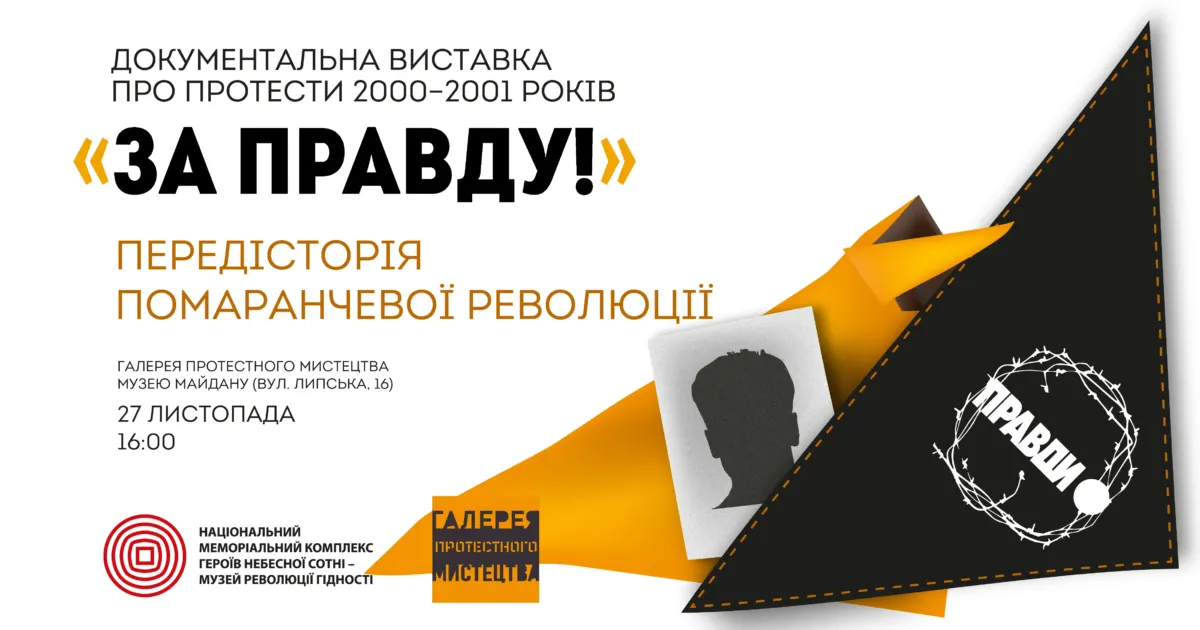 27 листопада о 16:00 у Галереї протестного мистецтва Музею Майдану (м. Київ, вул. Липська, 16) відбудеться відкриття документальної виставки ««За Правду!» Передісторія Помаранчевої Революції». Вхід – вільний.