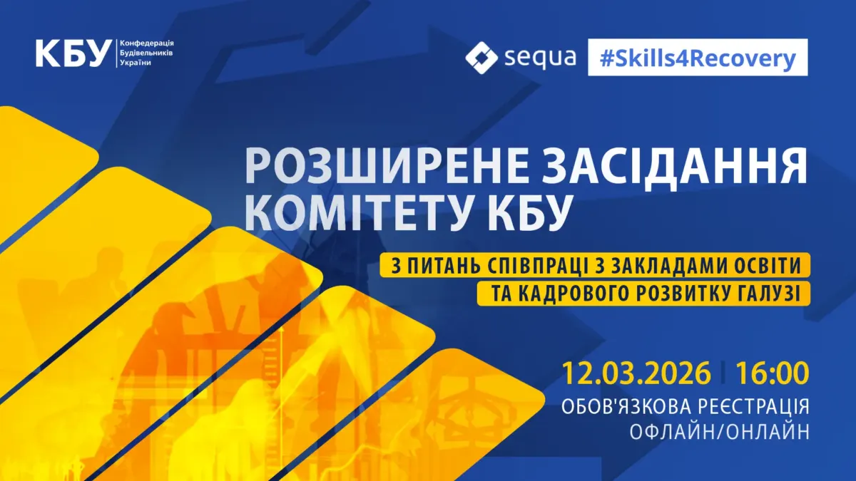 12 березня 2026 року, під головуванням Олексія Дніпрова, Ректора КНУБА, відбудеться розширене засідання Комітету Конфедерації будівельників України з питань співпраці з закладами освіти та кадрового розвитку галузі, присвячене напрацюванню ключових складових проєкту “Знак якості”.