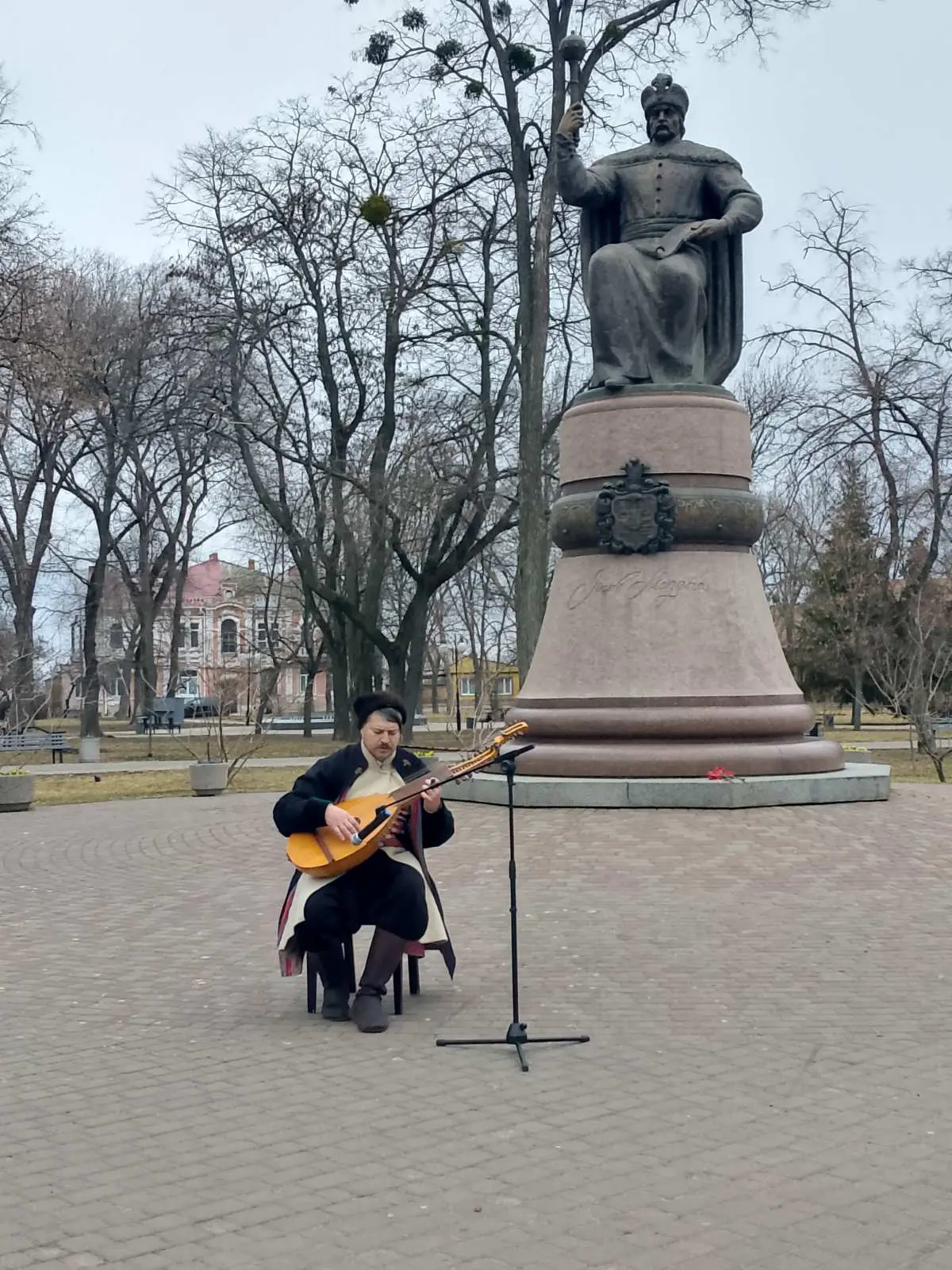 Вшанування Івана Мазепи продовжилося біля пам’ятника на Івановій горі. Знаний полтавський кобзар Назар Божинський представив присутнім відроджений ним, виготовлений власноруч торбан Івана Мазепи – древній український народний струнний щипковий музичний інструмент. Торбан називали «панською бандурою», оскільки він був популярний серед освіченої еліти Гетьманщини.  Тож знаково, що пан Назар саме на торбані заграв і заспівав думу гетьмана Івана Мазепи «Ой горе тій чайці».