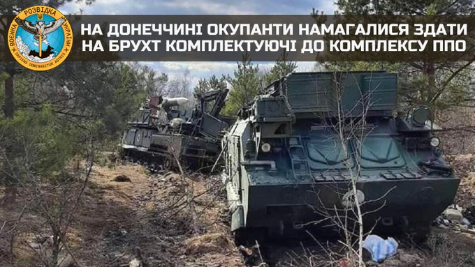 Щоб не потрапити на передові позиції, командири однієї з батарей 933 зенітно-ракетного полку окупаційних військ вирішили зробити свою техніку небоєздатною. Загарбники познімали з бойових машин “Тор-М2У” блоки управління та вирішили продати їх у пункті прийому дорогоцінних металів.