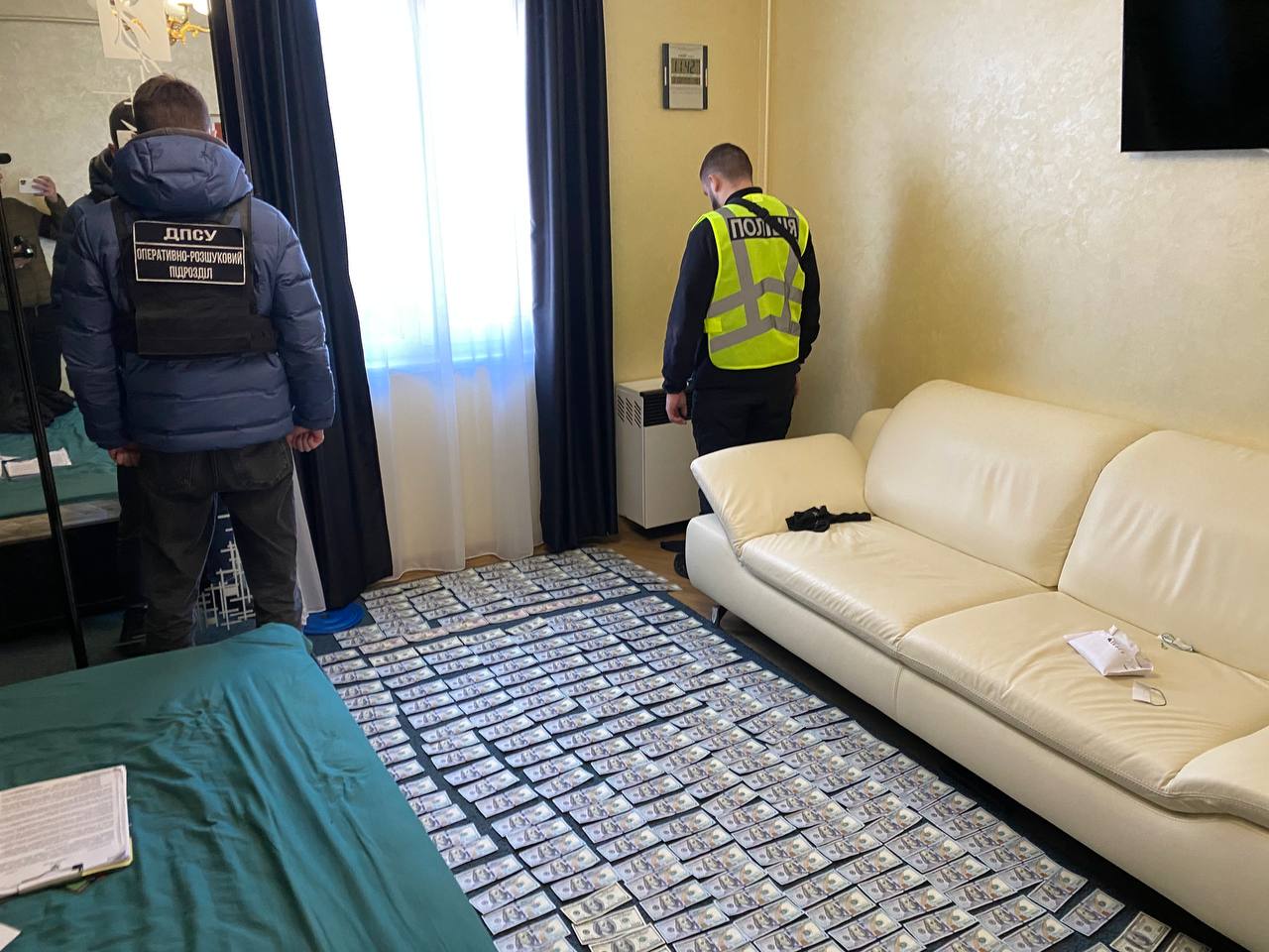 Правоохоронці провели 10 санкціонованих обшуків за місцями проживання фігурантів та в транспортних засобах в Києві, у Київській, Львівській та Закарпатській областях. За їх результатами було вилучено речові доказі у справі: 10 мобільних телефонів, 7 транспортних засобів, готівкові кошти в національній та іноземній валюті, оргтехніку, банківські картки тощо.