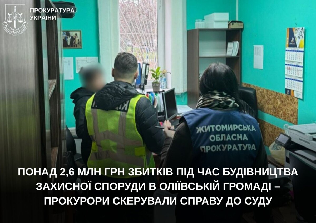 За процесуального керівництва Житомирської окружної прокуратури до суду скеровано обвинувальний акт стосовно директорки за фактом заволодіння чужим майном шляхом зловживання службовою особою своїм службовим становищем, вчиненому в умовах воєнного стану та у особливо великих розмірах, внесення до офіційних документів завідомо неправдивих відомостей, а також легалізації майна, одержаного злочинним шляхом (ч. 5 ст. 191, ч.1 ст. 366, 1 ст. 209 КК України) та стосовно інженера технічного нагляду за фактом службової недбалості (ч. 2 ст. 367 КК України).