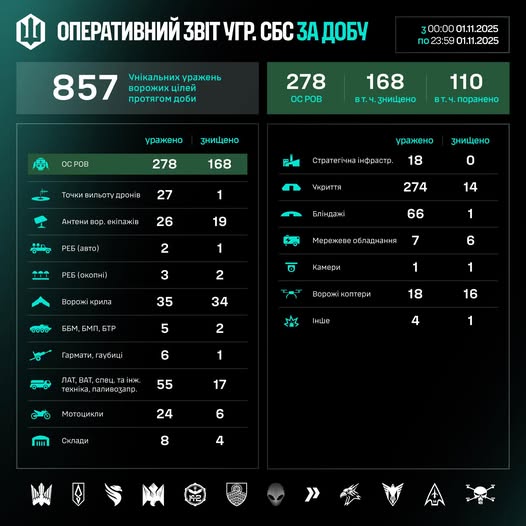 • 278 одиниць особового складу, з яких 168 – ліквідовано;