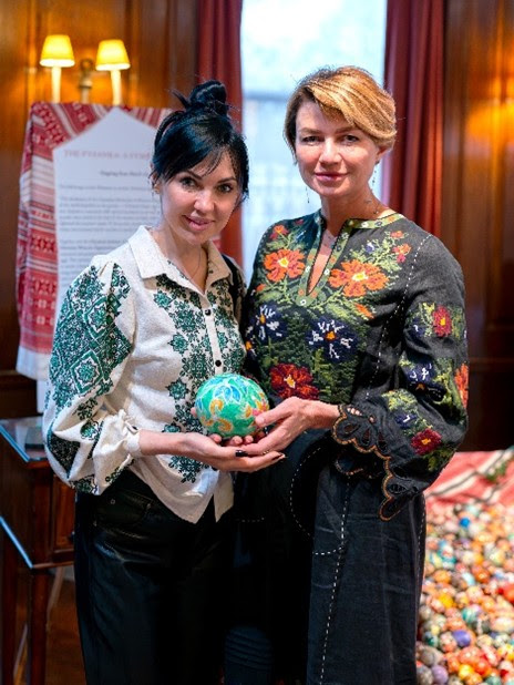 Під час майстер-класу в Києві за участю художників, телеведучих і спортсменів українські діти, які переживають досвід війни, створили цю «Писанку Перемоги». Її було створено під час Великодніх свят – під пронизливий звук сирен повітряної тривоги, але також із великою вірою в мир. Розписана на страусиному яйці, Писанка Перемоги є унікальним артефактом – справжнім голосом дітей війни, символом їхньої стійкості, незламного духу та надії. Писанка Перемоги поєднує давню українську традицію із сучасним досвідом боротьби та відновлення і несе світові послання про силу культури та віру в перемогу. У 2025 році Ярина Вітрович та її син Юрко привезли Писанку Перемоги з України до Нью-Йорка і розмістили її в інсталяції. 9 березня 2026 року, під час заходу, організованого Постійним представництвом України при Організації Об’єднаних Націй, гості з України — Галина Скіпальська, директорка Українськоі фундаціі громадського здоровя в Україні (праворуч), та Тетяна Хитрик, ПР менеджерка Українськоі фундаціі громадського здоровя в Україні (ліворуч) — відвідали інсталяцію в Українському інституті Америки. Інсталяцію «Писанка – символ надії» кілька років тому організувала Софійка Зєлик, голова Референтури СФУЖО у справах культури, з метою повернути всі писанки до України після завершення війни.
