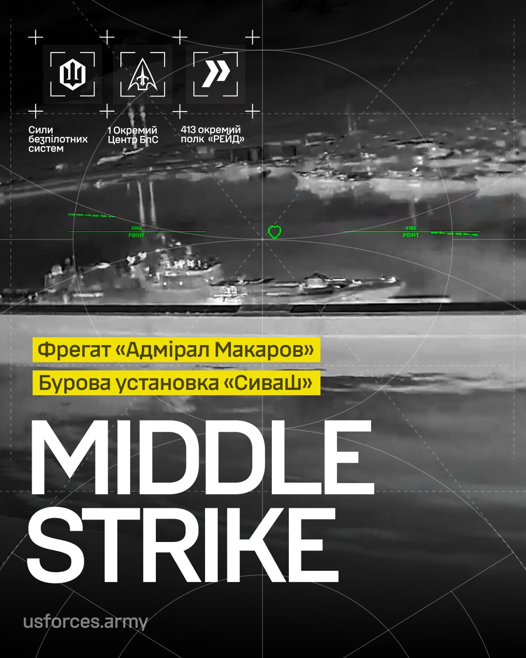 Водночас оператори 413-го окремого полку «Рейд» уразили самопідйомну плавучу бурову установку «Сиваш», яку рф використовує як мобільну базу ППО/РЛС у Чорному морі для прикриття стратегічно важливих об’єктів. Операція здійснена спільно з силами глибинного ураження ВМС.