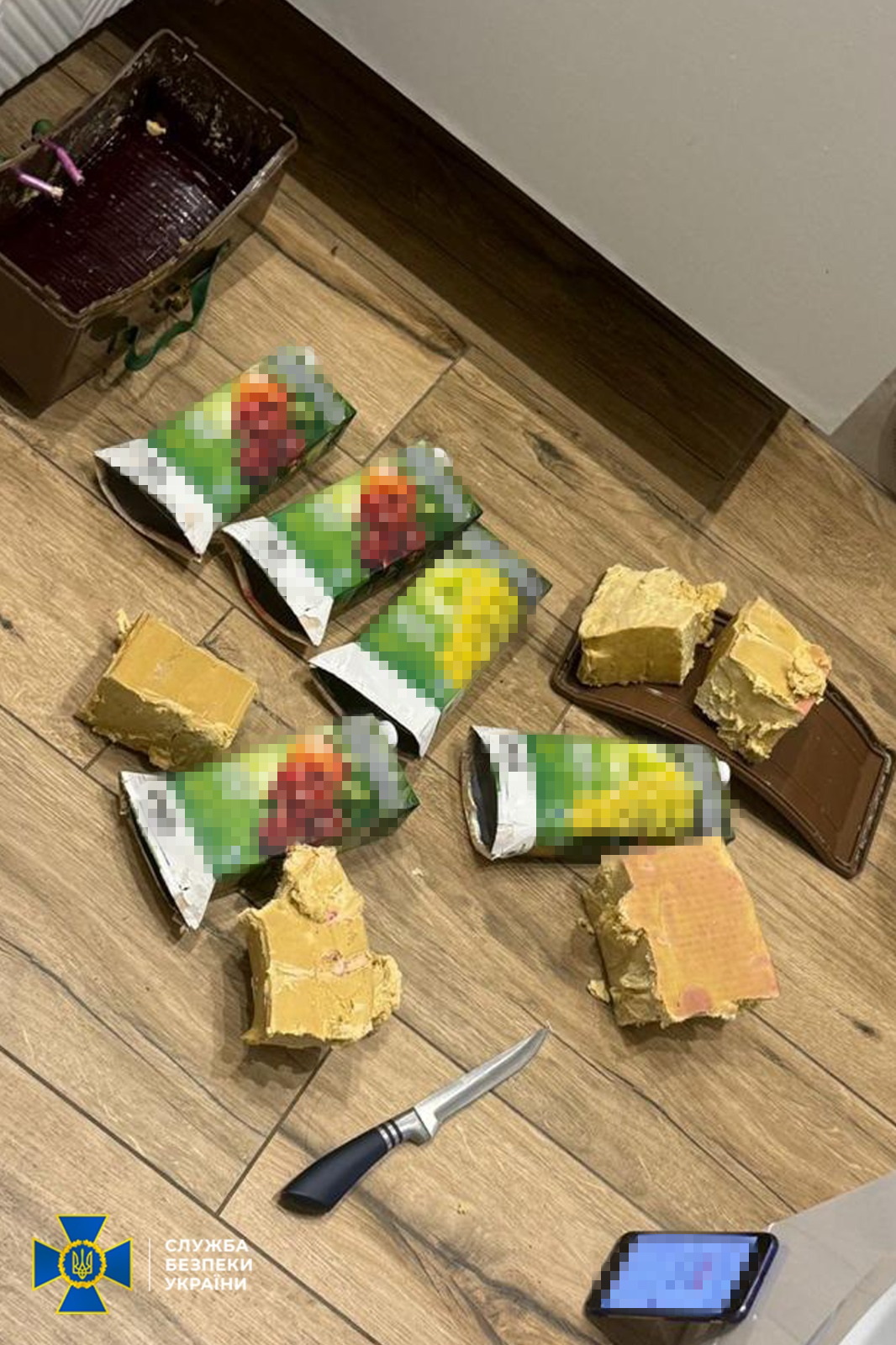 Інший фігурант – мешканець Харкова, за інструкцією ворога прибув до західного регіону, забрав зі схрону протипіхотну міну, дістав з неї пластид, розділив на частини, замаскував їх у коробки з-під соку та заклав у нову схованку.