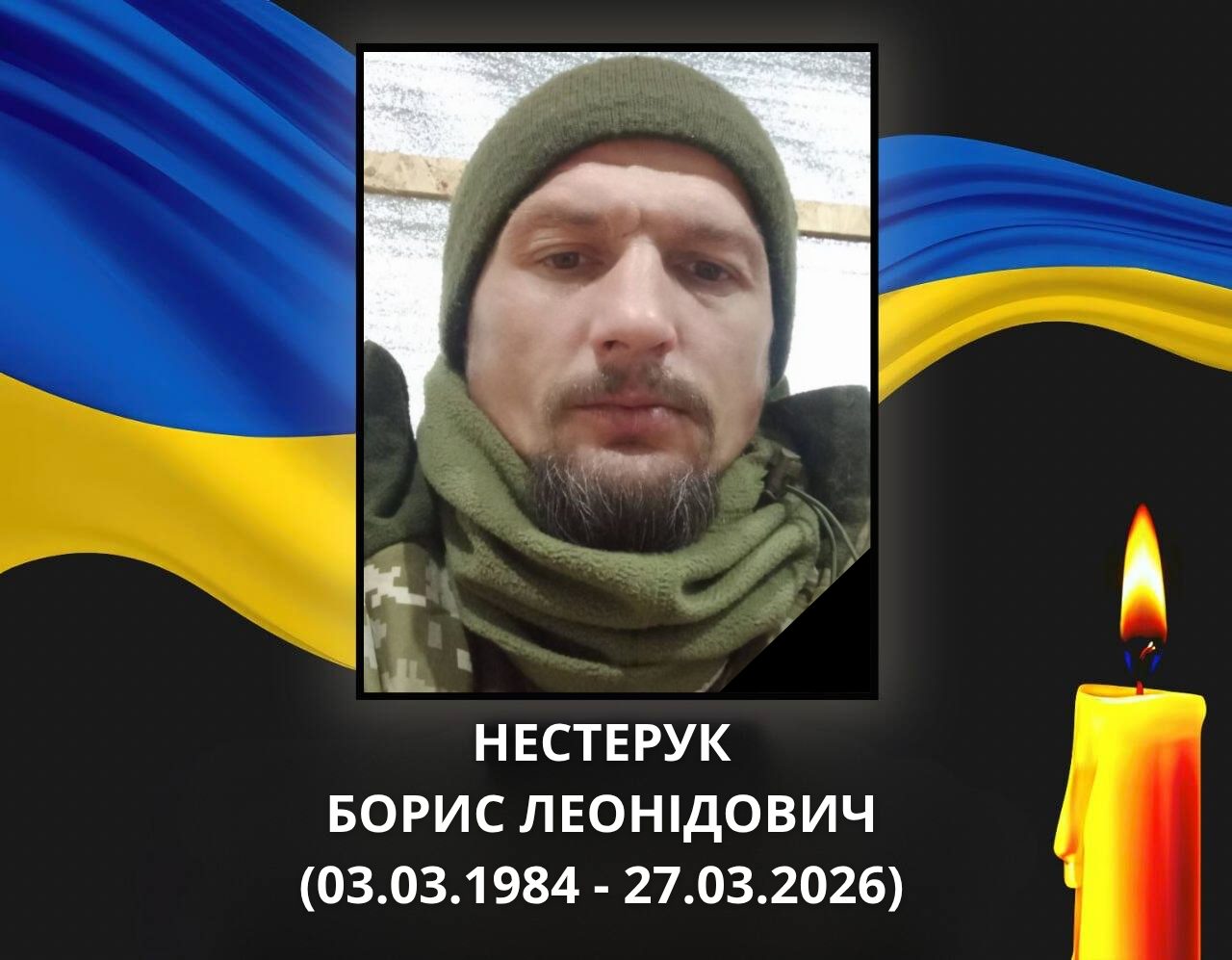 На фронті загинув ковельчанин Борис Нестерук. Свій останній бій воїн прийняв 27 березня 2026 року під час виконання бойового завдання з оборони села Світле Покровського району Донецької області.