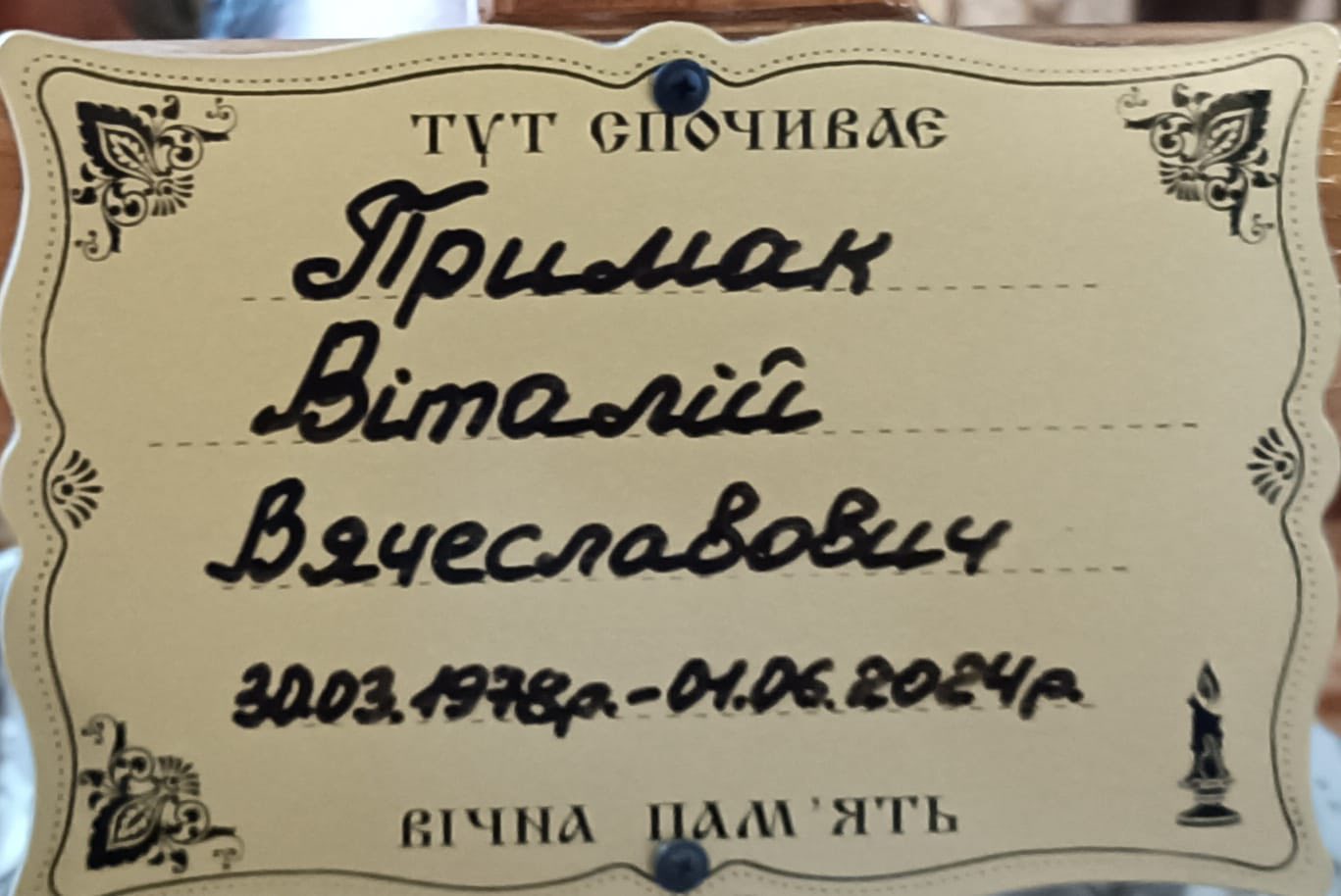 Старший лейтенант Віталій Примак загинув 1 червня 2024 року в Донецькій області.