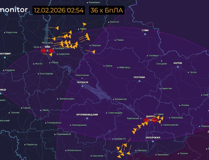 У ніч на 12 лютого (з 18:00 11 лютого) противник атакував 24 балістичними ракетами Іскандер-М/С-300 із Брянської, Воронезької, Ростовської обл. – рф, ТОТ Криму, керованою авіаційною ракетою Х-59/69 із повітряного простору ТОТ Донецької обл., а також 219 ударними БпЛА типу Shahed, Гербера, Італмас та безпілотниками інших типів із напрямків: Курськ, Орел, Міллерово, Брянськ, Приморсько-Ахтарськ, Шаталово – рф., Гвардійське – ТОТ АР Крим, близько 150 із них – “шахеди”.
