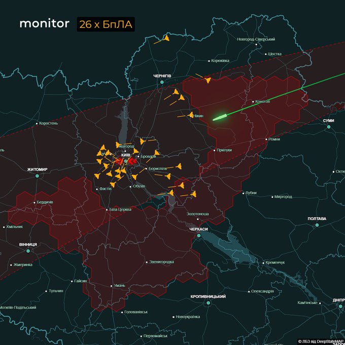 Загалом радіотехнічними військами Повітряних Сил виявлено та здійснено супровід 632 засобів повітряного нападу – 36 ракет та 596 БпЛА різних типів: