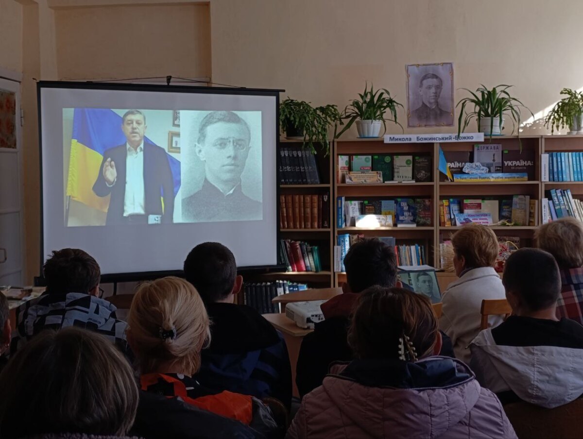 Особливе місце у просвітницькому зібранні мав відеовиступ представника Українського інституту національної пам’яті в Полтавській області Олега Пустовгара. Як автор-упорядник книги «Герої Крут і Полтавщина» він вияскравив життєвий шлях Миколи Божинського-Божка, його участь у бою під Крутами, а також про вшанування пам’яті героїв цього бою на Полтавщині.