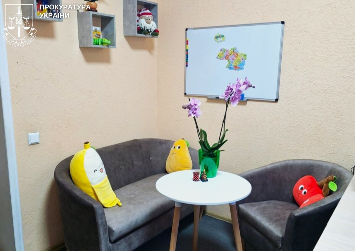 В приміщенні Звягельської окружної прокуратури обладнали такий простір та вже провели перший допит дитини із дотриманням «формули ефективної взаємодії з дитиною»: «безпечне місце» + «безпечний дорослий» = «дитина у безпеці».