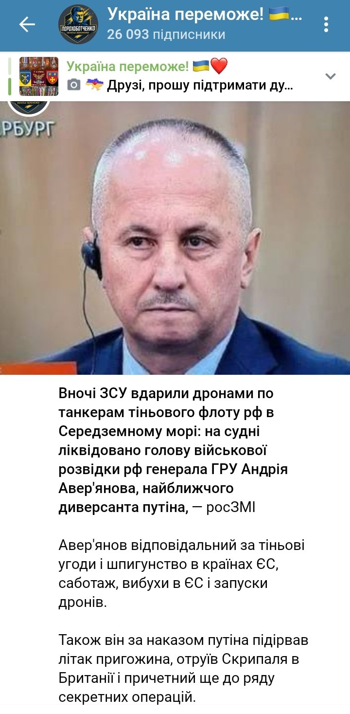 На момент публікації матеріалу українське командування не коментувало можливий удар по танкеру РФ у Середземному морі.