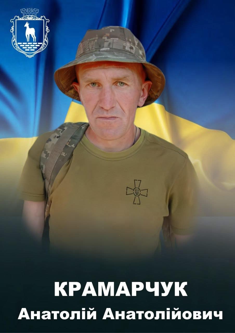 Анатолій Крамарчук проживав у місті Сарни. Працював будівельником, захоплювався риболовлею, цінував прості радості життя. Завжди був привітним, доброзичливим і ніколи не відмовляв у допомозі. У липні цього року став на захист Батьківщини у складі 5-ї окремої штурмової бригади, мав позивний «Крамар». На жаль, 25 вересня цього року 43-річний солдат загинув у бою на території Дніпропетровської області. У воїна залишилися сестра та племінниця.