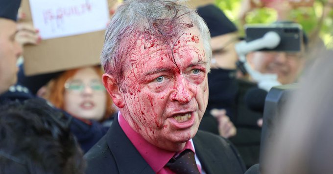 ⚡️In Warsaw, the Russian ambassador was doused with red paint. This happened during the laying of flowers to Soviet soldiers. pic.twitter.com/GETyJN7CXH