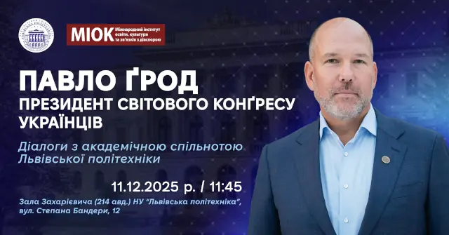 Міжнародний інститут освіти, культури та зв’язків з діаспорою Національного університету «Львівська політехніка», багатолітній стратегічний партнер Світового Конґресу Українців (СКУ), запрошує на відкриту зустріч-дискусію з Президентом СКУ Павлом Ґродом.