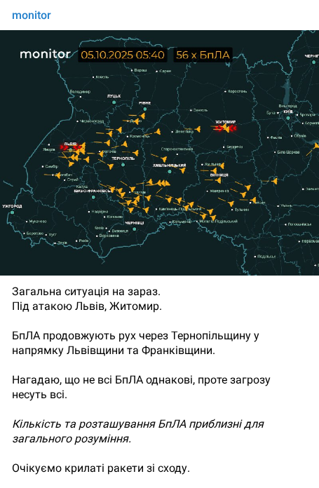 Вночі Львів атакували шахеди, крилаті ракети і два кинжали (відео) 05-10-2025 07:22 Новини https://ukrpohliad.org/wp-content/uploads/2025/10/lviv5-10-2025.mp4