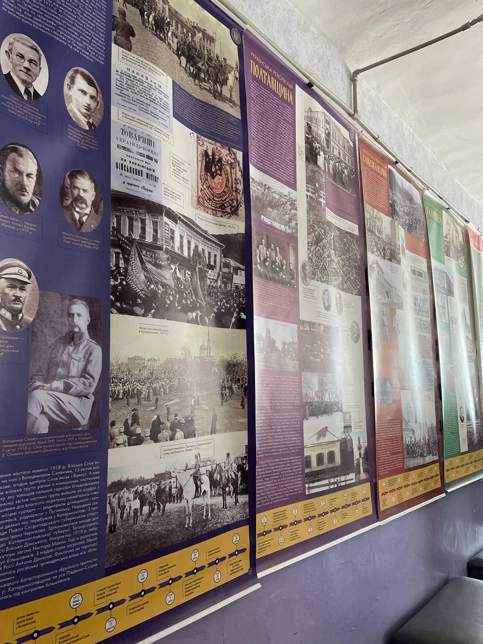 «Мешканці Кобеляк знайомляться зі світлинами, мапами, документами, хронологією подій в часи Української Центральної Ради, Української держави (гетьманату) Павла Скоропадського, Директорії УНР, окупації УНР більшовицькою Росією, масових селянських антибільшовицьких повстань. 14 банерів виставки розповідають про події сторічної давнини. Кожен з них присвячений певному українському регіону — Буковині, Закарпаттю, Київщині, Криму, Слобожанщині, Таврії, Чернігівщині та іншим. Така форма подання дозволяє простежити основні події та унаочнити їх загальноукраїнський характер, виокремити специфічні регіональні особливості перебігу подій та суспільної думки. Матеріал виставки забезпечує всебічне вивчення перших визвольних змагань українського народу за державну незалежність України на початку ХХ ст. у розрізі регіонів. Зокрема, окремий банер присвячений подіям 1917 — 1923 років на Полтавщині. Тут і розповідь про національне піднесення на Полтавщині навесні 1917 року, і постать голови Директорії УНР Симона Петлюри, і повстанський рух», — розповіли в Управлінні освіти, культури, туризму, молоді та спорту Кобеляцької міської ради та представництві УІНП в Полтаві.