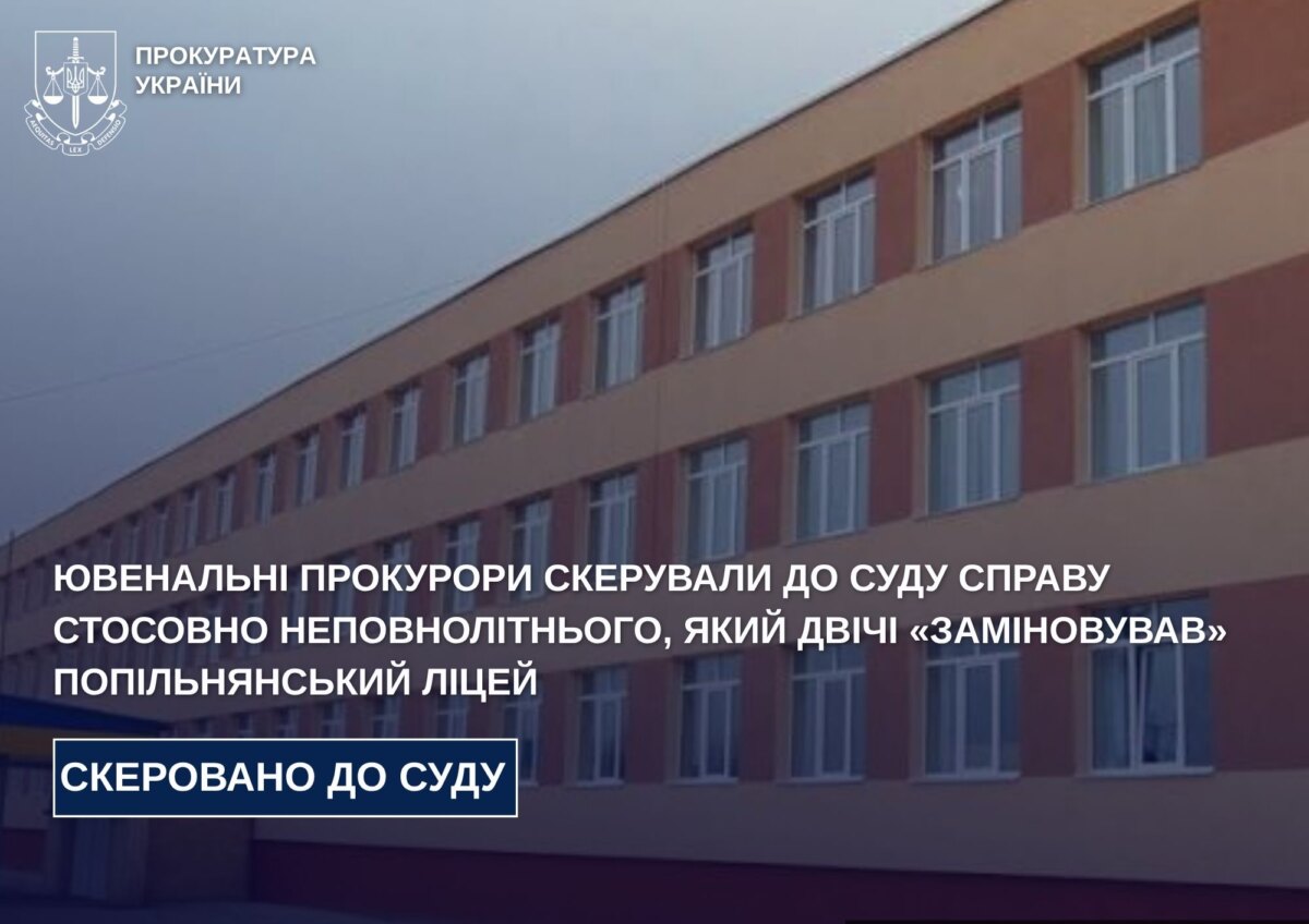 У березні 2026 року 15-річний учень Попільнянського ліцею двічі надіслав на електронну адресу Департаменту кіберполіції Національної поліції України завідомо неправдиве повідомлення про підготовку вибуху з метою порушення громадської безпеки у ліцеї, нормального ритму роботи та внесення елементу дезорганізації його функціонування.