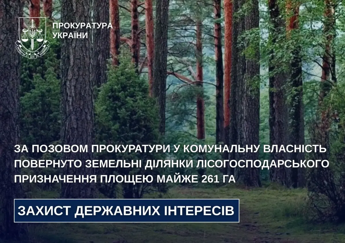 За позовом Звягельської окружної прокуратури з незаконного володіння приватного підприємства витребувано на користь Житомирської обласної ради 10 земельних ділянок лісового фонду площею 260,8618 га.