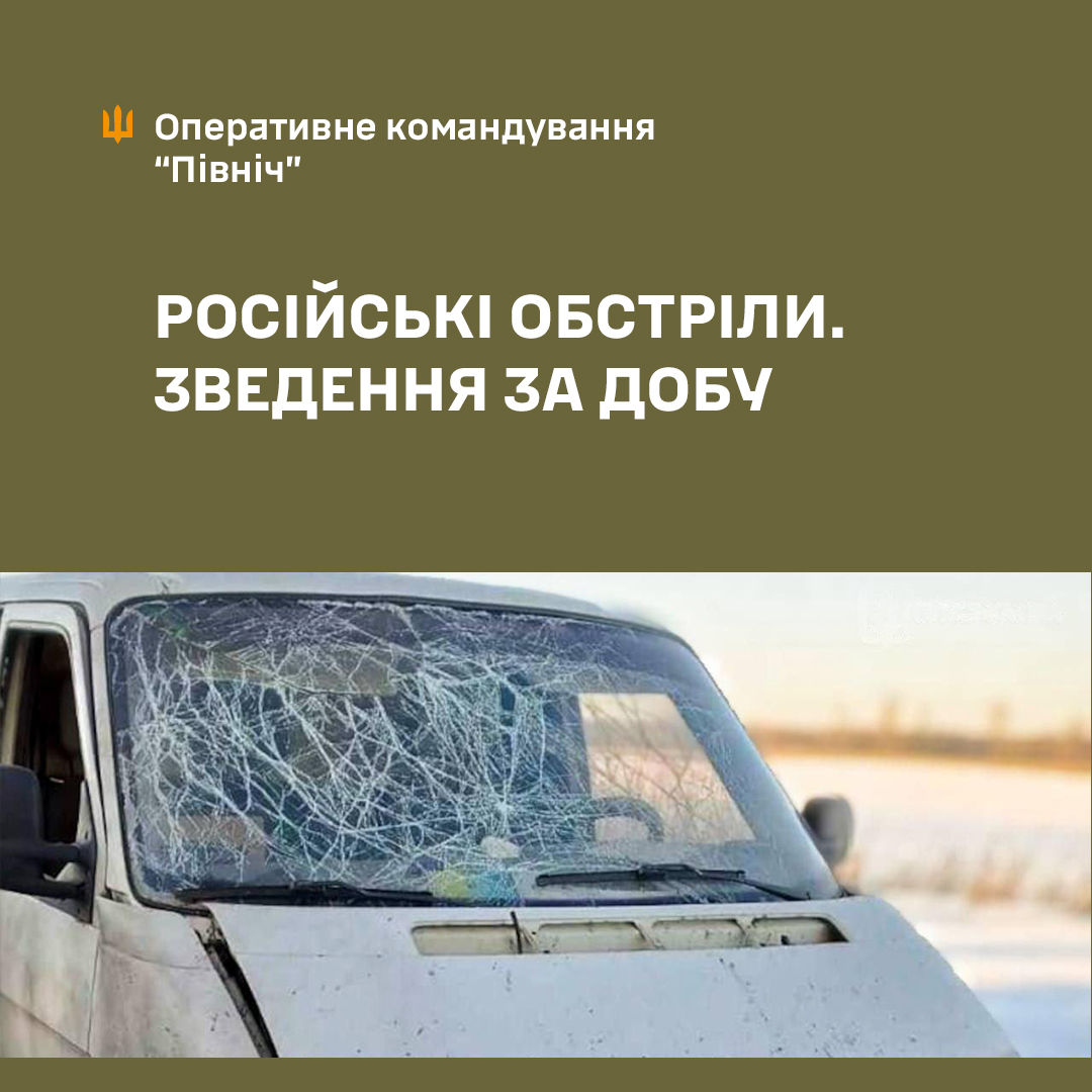 Терористична армія рф продовжує обстрілювати територіально підпорядковані ОК “Північ” області. Порушуючи правила ведення війни, рф цинічно та підступно тероризує мирне населення, знищує цивільну та критичну інфраструктуру. За минулу добу і станом на ранок 11.02.2026 року зафіксовано: