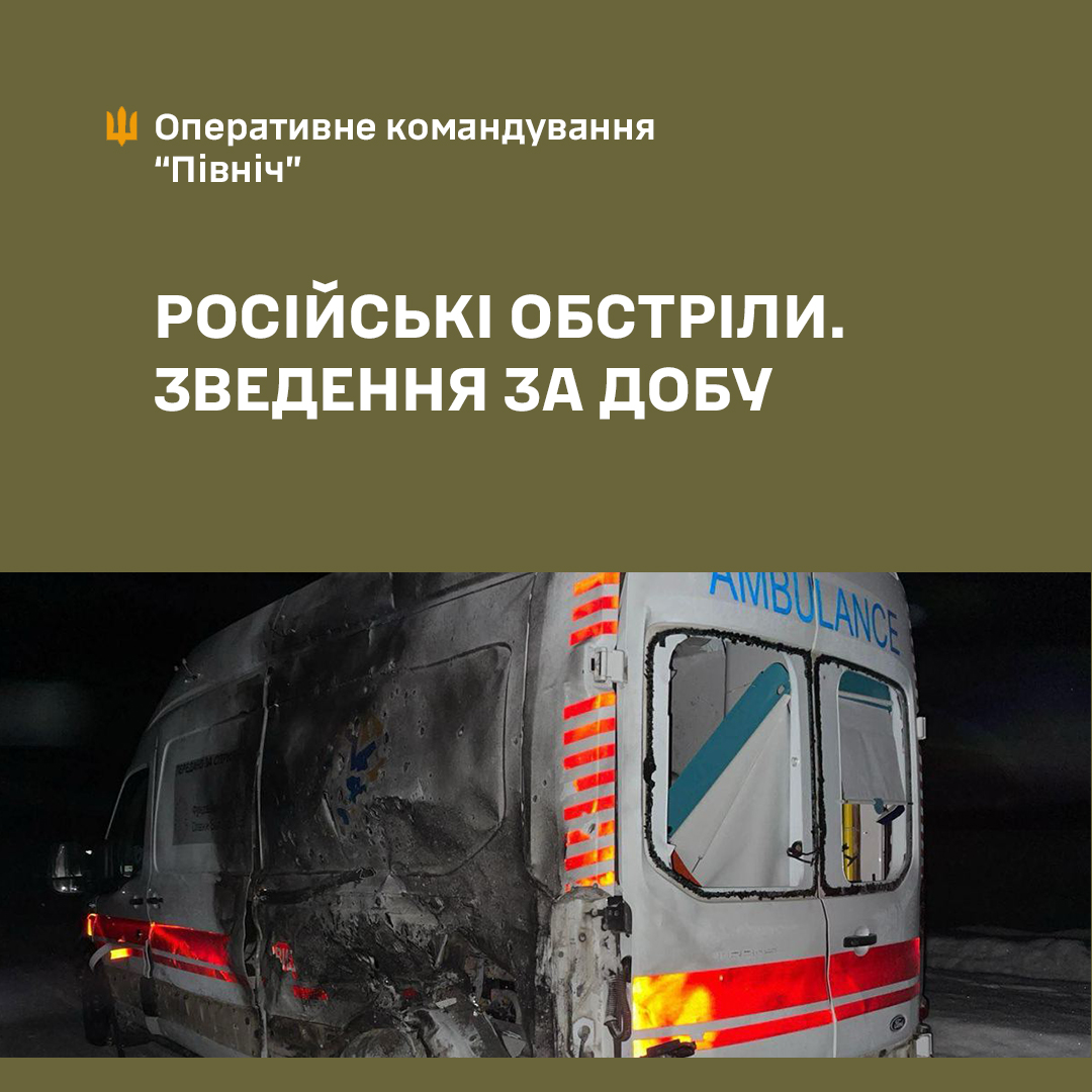 Армія рф продовжує обстрілювати територіально підпорядковані ОК “Північ” області. Порушуючи правила ведення війни, рф цинічно та підступно тероризує мирне населення, знищує цивільну та критичну інфраструктуру. За минулу добу і станом на ранок 12.01.2026 року зафіксовано: