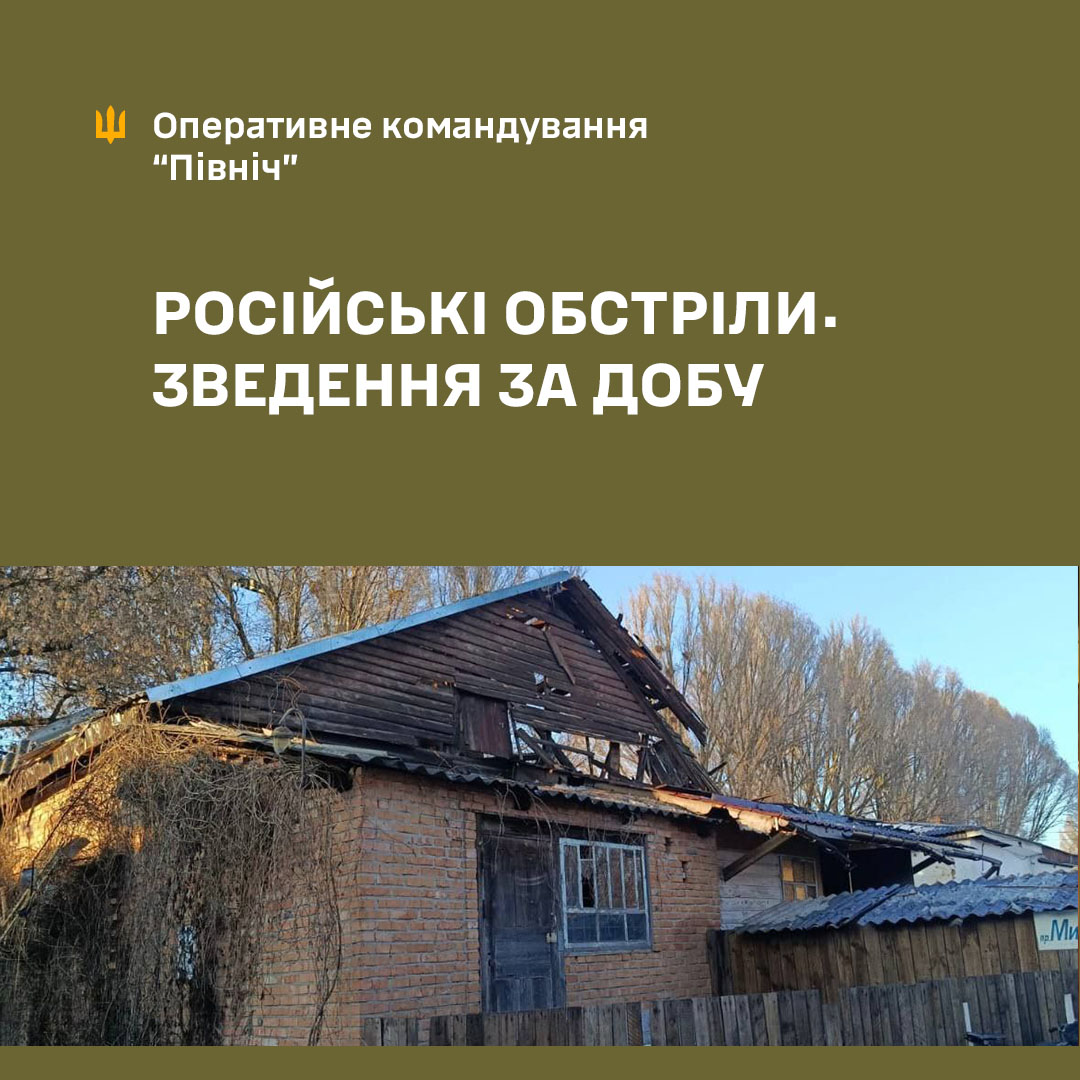 Терористична армія рф продовжує обстрілювати територіально підпорядковані ОК “Північ” області. Порушуючи правила ведення війни, рф цинічно та підступно тероризує мирне населення, знищує цивільну та критичну інфраструктуру. За минулу добу і станом на ранок 14.02.2026 року зафіксовано: